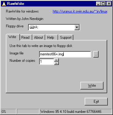 3º Escribir la imagen binaria a un diskette con el RawWrite ()
